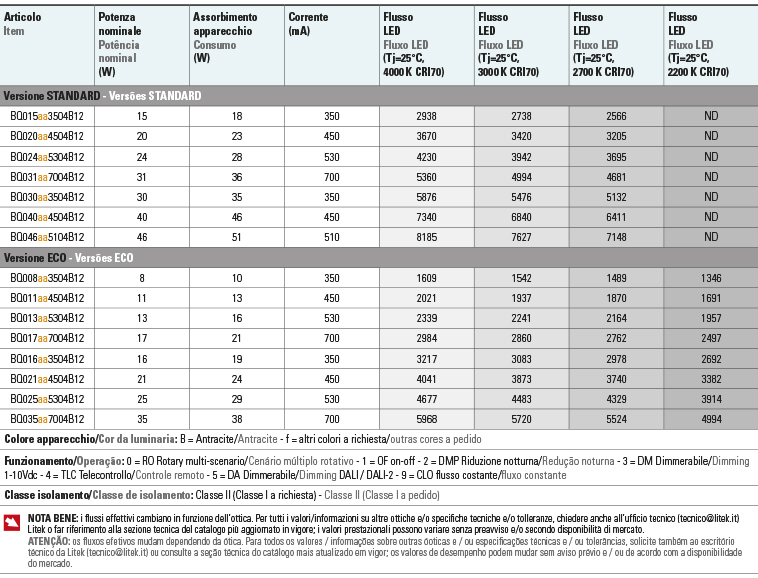 I dati qui riportati non sono impegnativi. Litek si riserva di apportare in qualunque momento modifiche costruttive tendenti al miglioramento del prodotto. Per informazioni tecniche, voci di capitolato, schede tecniche, certificazioni, fotometrie e progetti contattare: tecnico@litek.it